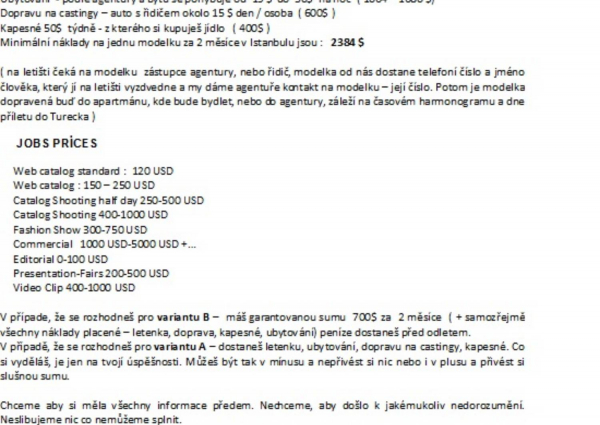 Modelky do Turecka na honorovanou zakázku